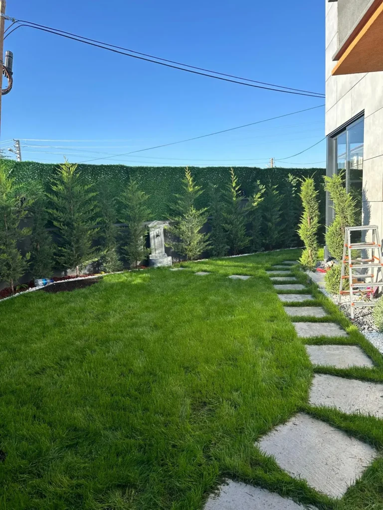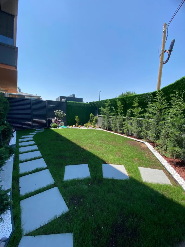 Doğal dengenin, fonksiyonel kullanım alanlarıyla harmanlandığı bu bahçe tasarımı; yürüyüş yolları, sebze alanları ve süs bitkileriyle yaşam alanına hem üretkenlik hem de estetik kazandırmıştır. Geniş alan verimli bir şekilde planlanarak, modern ve kullanıcı dostu bir dış mekân ortaya çıkarılmıştır.